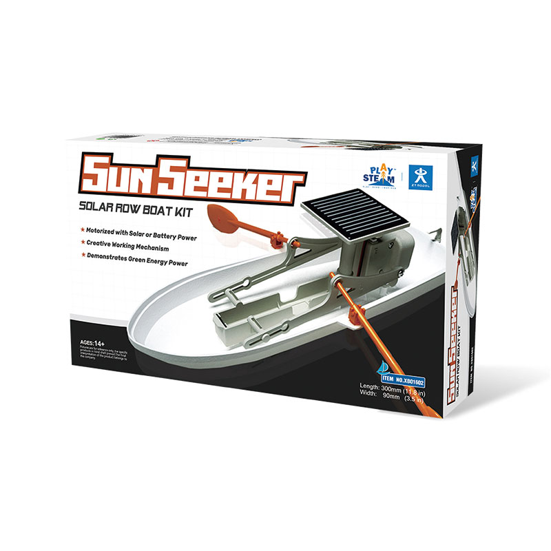Construct a solar-electric boat that can be powered by a solar panel or 2*AA batteries. It is a very hands-on craft model kit. You can also learn how solar panels convert energy from sunlight into electricity to drive the motor and move your boat.
